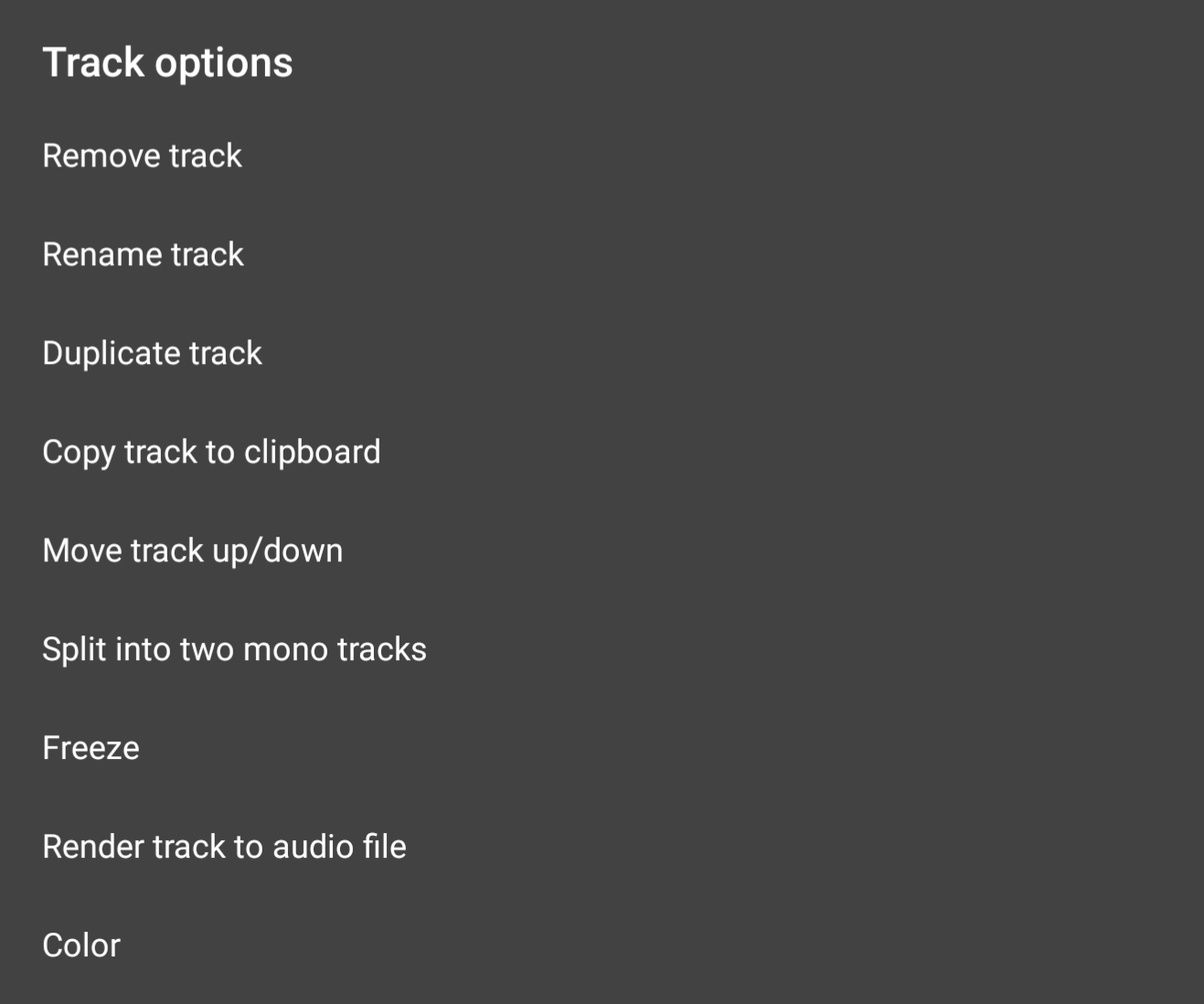 Copy track to clipboard copies the entire track to the clipboard. Once something has been copied to the clipboard, Paste will also be shown in the Track Options shown above. To Paste