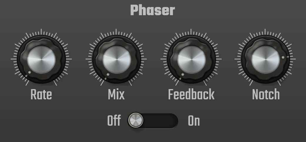 The Mix dial controls the ratio of original signal and modulated signal in the Phaser output. With the dial all the way on the left, only the original signal is heard.