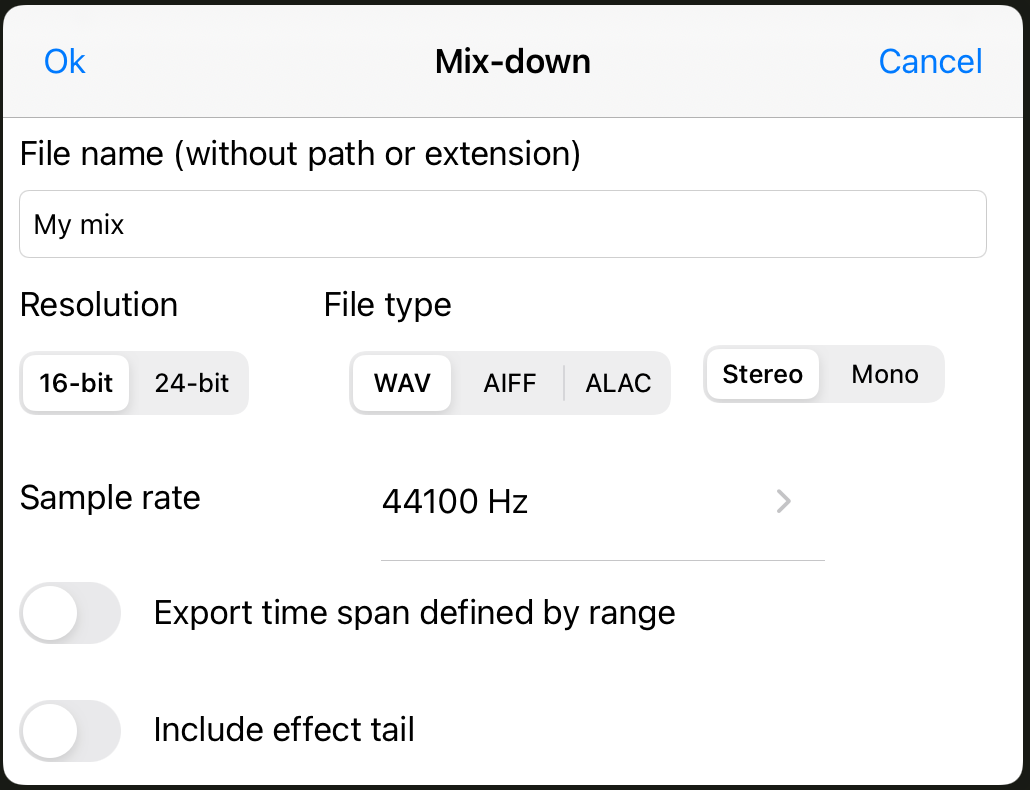 Once you have everything set up as you want it, press OK to mixdown and export your audio file.