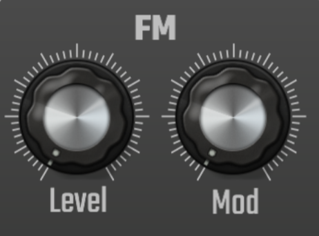 FM stands for Frequency Modulation. Evolution One provides what is referred to as an FM pair. This comprises of a Carrier signal (the signal to which the modulation is applied) and a Modulator (whose frequency modulation index modulates the frequency of the carrier signal). In this case, the process generates side band harmonics as the Mod is increased, resulting in a richer, brighter output waveform.