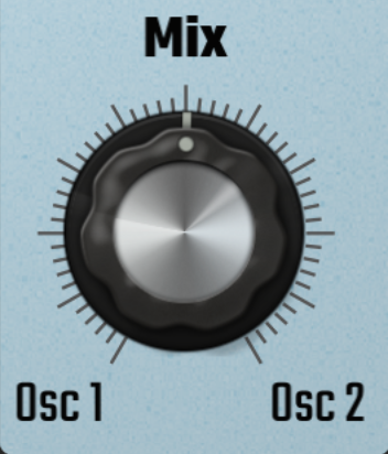 The Level dials can be used to set the volume of each oscillator within your synth sound but you can also use the Mix dial, seen below, to control the ratio of Osc 1 to Osc 2 in the output.