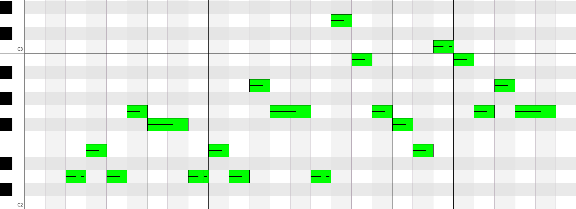 For those of you who do not read musical notation, here is the same musical information represented as MIDI events on Audio Evolution Mobile’s piano roll editor. This shows the musical notes as written in the notation and therefore does not translate the fermata which is a user defined performance note not a specific value which can be automatically translated into MIDI. The Audio Evolution Mobile project has been set to a 3/4 time signature at 80 beats per minute.