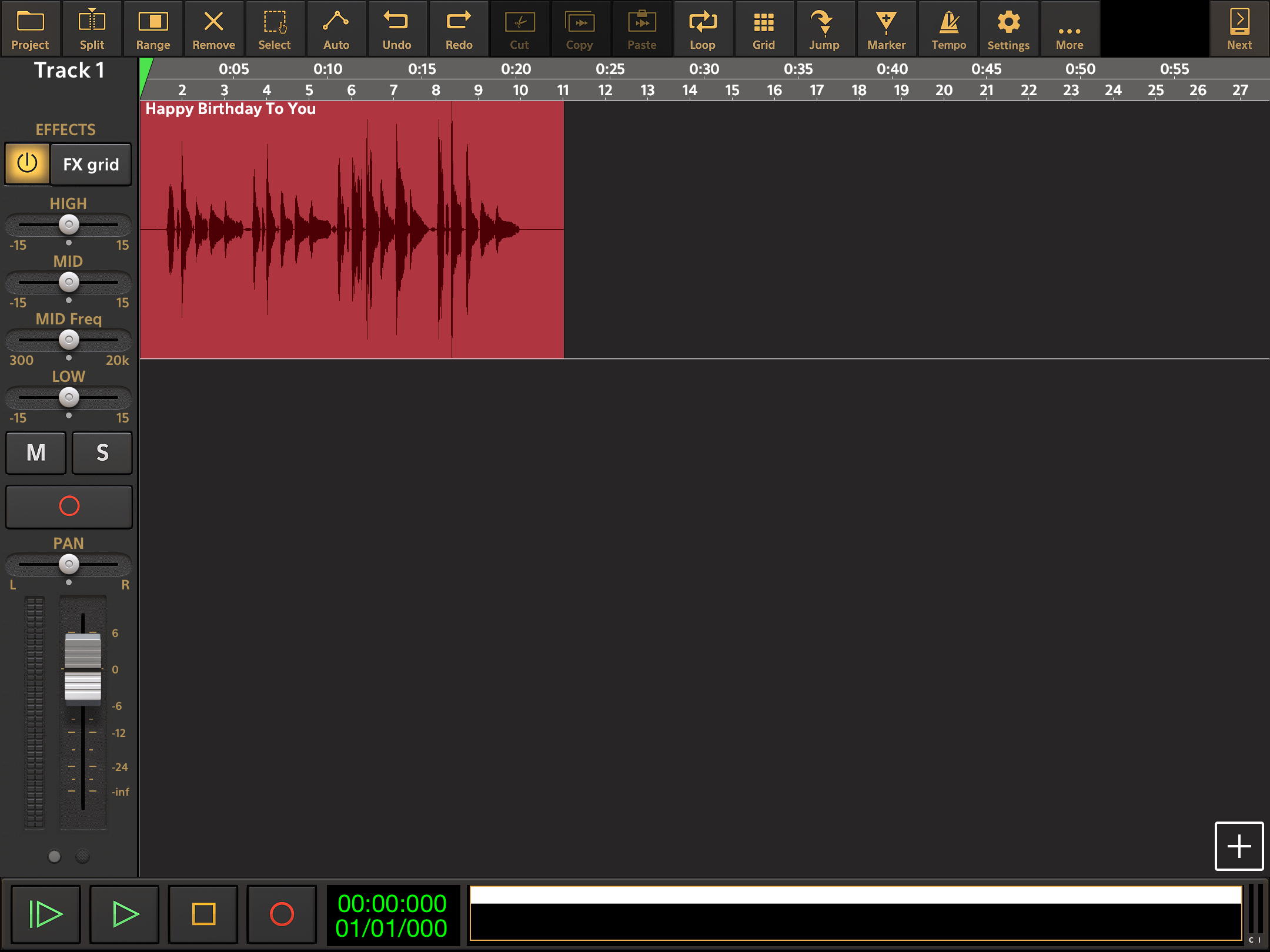 As you can see, this is a monophonic recording, meaning only one audio channel is present. The clip has also been normalized within Audio Evolution Mobile to ensure that its peak volume is maximized without clipping and distorting. Details on how to normalize audio can be found within the Audio Evolution Mobile user manual which can be accessed via the More button and Help.