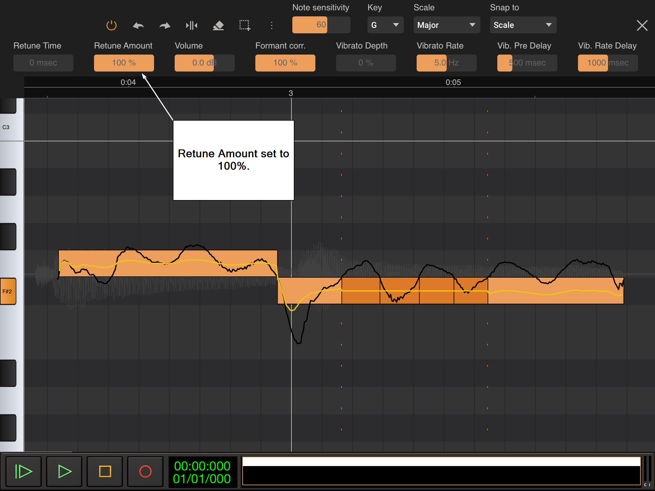 From this point, we can make any adjustments required to fine tune the pitch and timing, as well as how any retuning is applied.