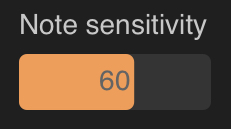 . The Note sensitivity parameter allows you to adjust how sensitive Vocal Tune Studio is to identifying and placing notes on the piano roll. Lower sensitivity will result in fewer notes being identified on the piano roll while higher sensitivity will place more and more note events corresponding to every tonal variation detected. As such, this parameter can be adjusted to find the sweet spot where all of the 'pitch events' in your vocal recording are represented on the piano roll in Vocal Tune Studio and are therefore available for you to edit as required. The default setting for Note sensitivity is 60 which generally gives very good results on a clear, clean vocal recording. Double tap on the slider to either Reset to the default value or enter a value using the onscreen keyboard.