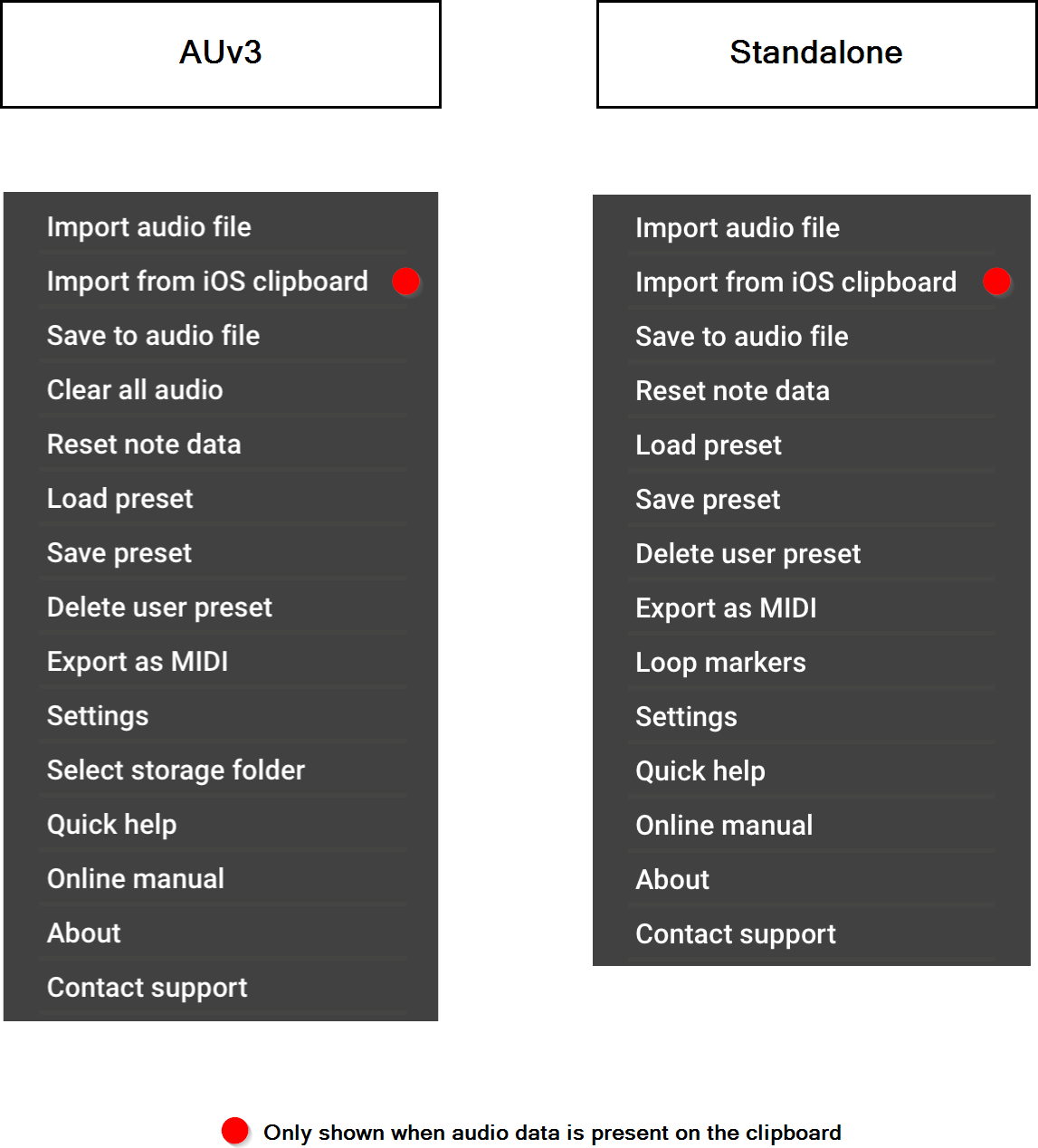 - Import from iOS clipboard Pressing this will import any audio file which is currently copied to the internal iOS clipboard into Vocal Tune Studio. Please be aware that, as stated above and here, though possible, this is not the recommended way to use the AUv3 Vocal Tune Studio plug-in. Please note that if no audio file is currently present on the clipboard, this option will not be shown in this list.