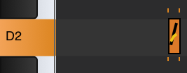 . At the beginning of the example shown in the screenshot above, a note has been selected on the piano roll by tapping on it once. Selecting a note turns it from yellow to orange, brings up two dotted lines indicating its beginning and end on the Timeline and highlights its corresponding note on the Keyboard Pitch Indicator which also displays the note's name. Selecting a note (or contiguous notes by long pressing and swiping left or right, or all notes using the Select All
