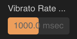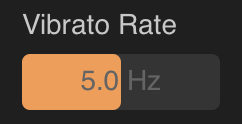 . Vibrato Rate allows you to decide the speed of the vibrato, how quickly it pulsates between the two pitches on either side of the note. This can be set between 2.0 and 8.0 Hz. The default value is 5.0 Hz. Double tap on the slider to either Reset to the default value or enter a value using the onscreen keyboard.